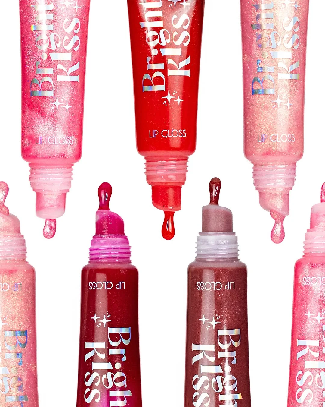 Brillo Bright Kiss para labios con tonos variados y acabado luminoso.