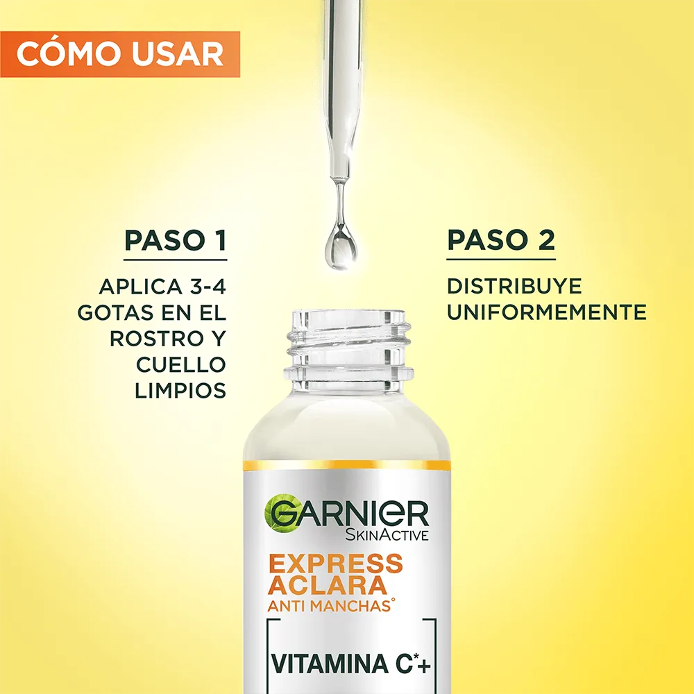 Serum Skin Garnier Vitamina Express es un sérum antimanchas con alta concentración de vitamina C para una piel visiblemente uniforme en 3 días.